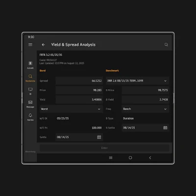 Plongez dans l'analyse approfondie des marchés avec des données spécifiques (WEI, WEIF, WB), explorez des informations complètes sur les titres et accédez aux études de recherche (Q, GP, FA, EE, ANR, RES) pour éclairer vos stratégies. Gérez vos portefeuilles (PORT) en toute simplicité et exploitez la puissance des tableurs Bloomberg (W) pour des calculs complexes, optimisant ainsi votre productivité en déplacement. De plus, ne manquez aucune opportunité cruciale grâce aux alertes personnalisables de Bloomberg (MLRT, NLRT, ALRT), vous informant en temps réel des mouvements de marché et des événements significatifs.