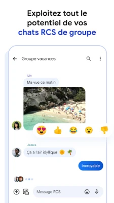 Google Messages, l'application officielle de Google, transforme vos échanges. Découvrez les avantages des services de communication enrichis (RCS) : partagez des photos et vidéos haute résolution, participez à des chats de groupe dynamiques et communiquez fluidement avec tous, même les utilisateurs d'iPhone.