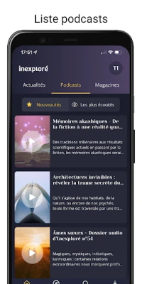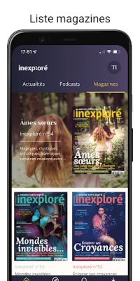 Avec Inexploré, explorez des actualités, articles, podcasts et magazines uniques sur des thématiques extraordinaires. Conçue pour mobiles et tablettes, l'application vous permet de consulter du contenu de qualité, hors-connexion, pour une expérience enrichissante et ouverte d'esprit, partout et à tout moment.