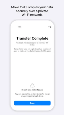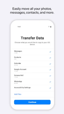 Migrer vers iOS facilite le transfert sécurisé et automatique de vos données d'Android vers un nouvel iPhone. Cette app simplifie la migration de votre contenu, éliminant le besoin de sauvegardes intermédiaires pour une transition fluide et sans effort vers l'écosystème iOS.