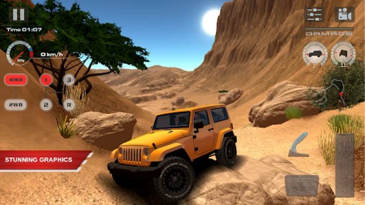 OffRoad Drive Desert est un jeu de simulation 4x4 ultra réaliste avec des graphismes HD. Explorez le désert en mode Free Roam, utilisez le blocage de différentiel et le treuil pour une expérience hors route authentique sur mobile.