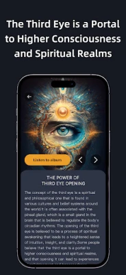 Découvrez une dimension supérieure de votre être avec Third Eye, l'application conçue pour éveiller votre potentiel intérieur. Plongez dans des paysages sonores méditatifs d'une puissance inédite, spécifiquement élaborés pour stimuler votre glande pinéale. Grâce à l'entraînement par ondes cérébrales de pointe, Third Eye favorise l'élévation de la conscience, ouvrant la voie à une perception accrue, une intuition affûtée et une créativité sans limites. Expérimentez une conscience élargie, où les capacités extrasensorielles naturelles sont amplifiées.